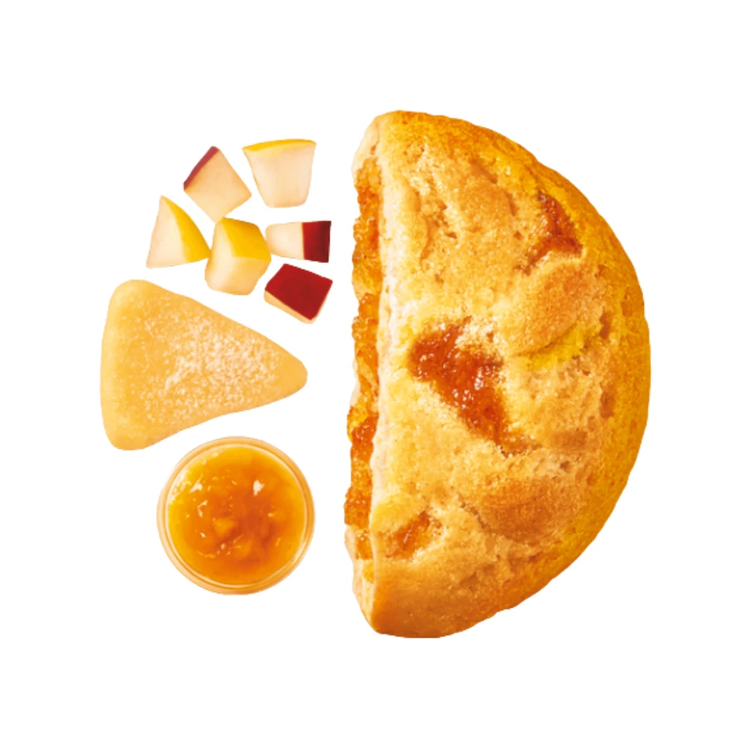 Product: Shortcrust biscuits filled with an apple flavoured jam and diced apples
