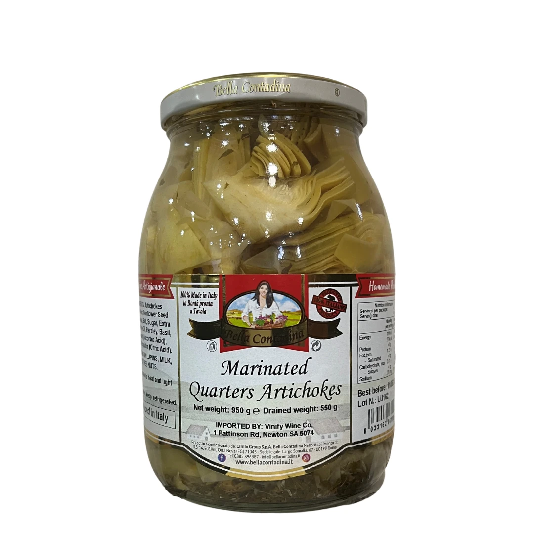 Product Description: Apulian-style artichoke quarters prepared according to traditional recipes, retain their taste and unique flavour of the land.