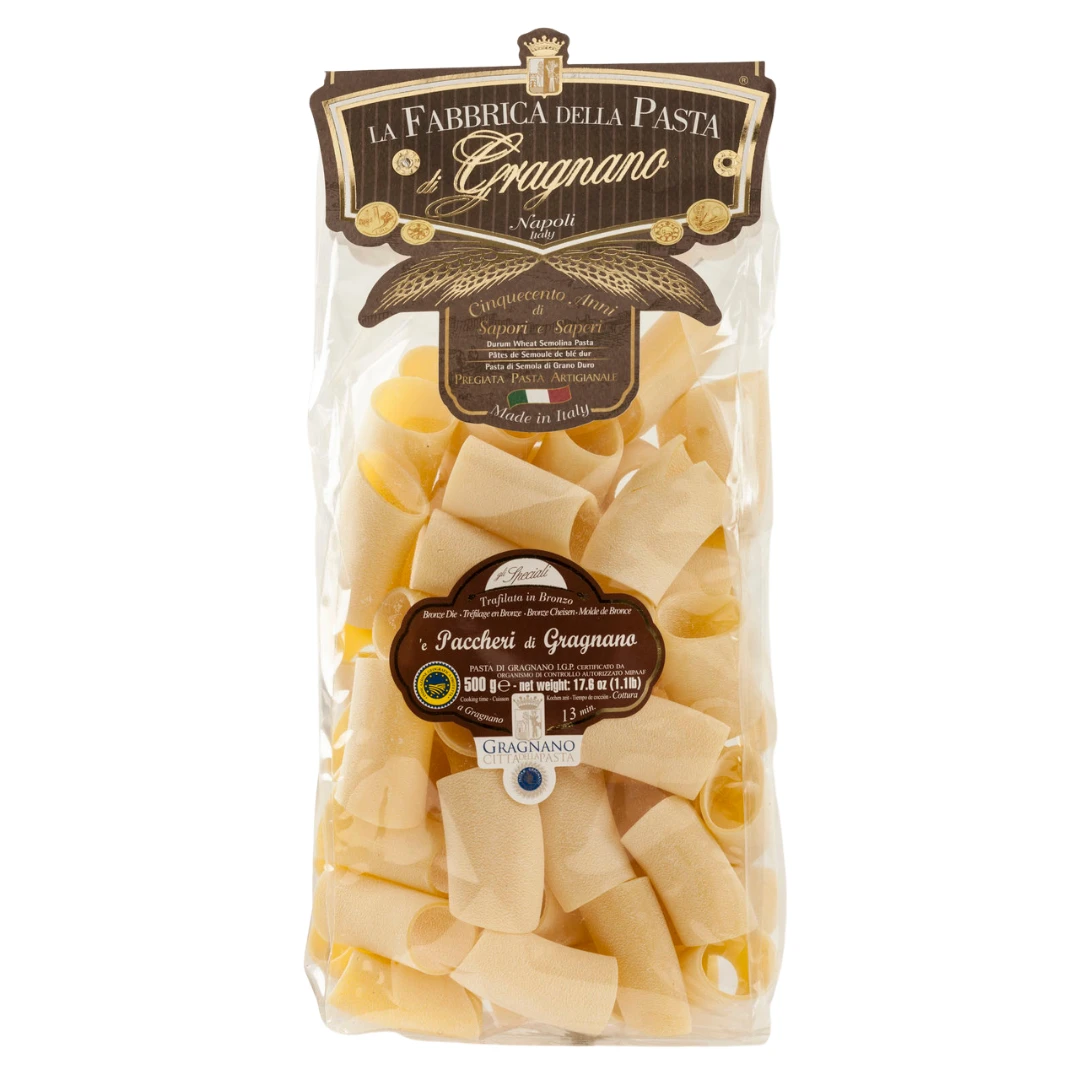 Producer Info: Located in the picturesque Campanian town of Gragnano, La Fabbrica della Pasta di Gragnano is a third-generation pasta business. Gragnano is nestled within the heart of the Lattari mountains, a location that provides ideal conditions for growing durum wheat and has ensured a long history of traditional pasta making in the town. La Fabbrica della Pasta uses mountain spring water, a slow drying method and, of course, the finest durum wheat to produce a delightfully textured pasta, which comes in a variety of shapes. The methods used by La Fabbrica della Pasta di Gragnano are a perfect example of the Calabrian pasta tradition.